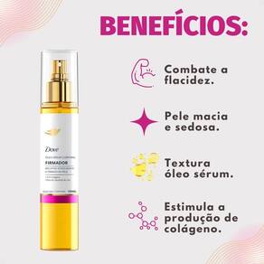 Aplique uma quantidade adequada do Óleo Sérum Corporal Dove Firmador Pró Colágeno sobre a pele limpa e seca.