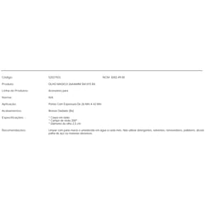 O Olho Mágico é composto de um visor de raio 2,5 cm com amplitude de visão de 200º e corpo em latão. É recomendado para utilização em portas com espessura entre 26 e 42 mm.