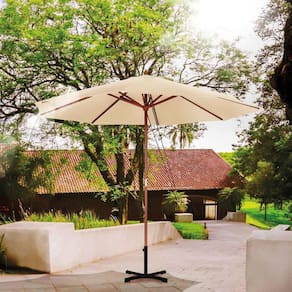 Ombrellone 3 Metros Diâmetro Bege Cabo Madeira 009166 MOR Garanta a sua sombra refrescante nos dias ensolarados com o Ombrellone de Madeira 3m! Sua estrutura em madeira garante maior durabilidade e o torna ideal para qualquer ambiente externo, seja no seu jardim, ao lado da piscina ou em sua varanda. Seu tecido em poliéster possui FPS 35. Não acompanha a base, mas possui haste com 37mm e pino de travamento para manter o ombrelone aberto, o qual fica preso à haste com corda, evitando que seja perdido. Adicione elegância onde você quiser com o Ombrelone de Madeira 3m! Importante: O uso do Ombrelone não dispensa o uso de Protetor Solar. Especificações: MATERIAL: Madeira COR PREDOMINANTE: Bege INFORMAÇÕES IMPORTANTES HASTE: 37mm GARANTIA: 90 Dias ALTURA: 2,58 Metros LARGURA: 3,00 Metros COMPRIMENTO: 3,00 Metros PESO: 6,64 Kilogramas Ref: 009166 Marca: MOR *Imagens meramente ilustrativas / Não acompanha a base do ombrellone.