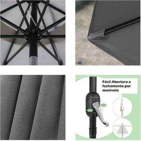 ( Fácil Operação ) O ombrelone facilita o uso. Basta girar a manivela para abrir o ombrelone. Caso deseja alterar a inclinação da cobertura é só pressionar o botão na articulação.