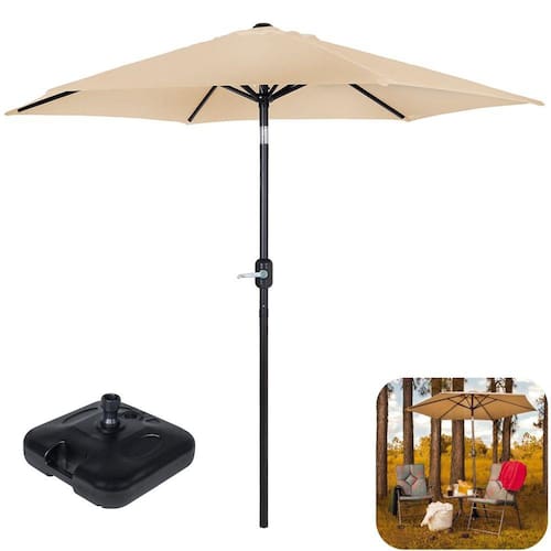 Não acompanha a base, mas possui haste com Ø 38mm articulável, que permite ajuste para se adequar ao sol, e manivela, que torna muito prático na hora de abrir ou fechar o ombrelone. Adicione elegância onde você quiser com o Ombrelone com Manivela Alumínio 2,4m!Importante: O uso do Ombrelone não dispensa o uso de Protetor Solar.