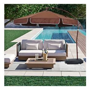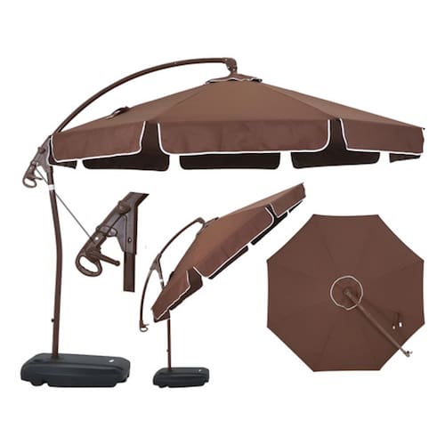 Ombrelone Bel Suspenso Buzios 3 metros Marrom de Luxo Giratório 360 com Base Abs, Estrutura em Aluminio e Cobertura em Poliester. Ideal p/ Piscina, Deck e Jardim