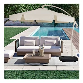 Ombrelone Bel Suspenso Buzios 3 metros Bege de Luxo Giratório 360 com Base Abs, Estrutura em Aluminio e Cobertura em Poliester. Ideal p/ Piscina, Deck e Jardim