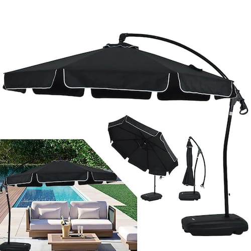 Ombrelone Suspenso 3 Metros Búzios Giratório 360 C/ Base BELO Ombrelone Suspenso Búzios Giratório 360° 3,00m é ideal para aproveitar seus momentos de lazer ao ar livre, seja na piscina, no jardim ou no deck. Indispensável para quem gosta de sombra, o ombrelone ainda vai decorar a área externa da sua casa com muita elegância e bom gosto. Sua cobertura em poliéster com extra ventilação vai te proteger dos raios solares, além de manter a sombra sempre fresca. O Ombrelone Suspenso Búzios Giratório 360° 3,00m Azul tem haste em alumínio, acionamento por manivela e inclinação regulável para projetar melhor a sombra de acordo com a posição do sol. O ombrelone é um produto de fácil manuseio, com giro de 360 e suporte para luminária. Este modelo acompanha base de 50 litros, que pode ser preenchida com água ou areia.Informações:· Cobertura em poliéster (FPS 60)· Sistema de acionamento por manivela· Suporte para luminária· Inclinação regulável· Giratório 360· Extra ventilação· Acompanha base de 50 litros (opção de enchimento com água ou areia)Dados Técnicos:FPS: 60Cobertura: PoliésterAcompanha Base: SimHaste: AlumínioAcionamento Ombrelone: ManivelaDimensões Ombrelone: 300 cm x 300 cm x 250 cmDiâmetro: 3,00mAdaptador para luminária: SimGiratório: SimRegulável: SimReclinável: SimAcompanha: Base 50 LitrosModelo: Suspenso
