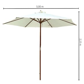 Ombrelone Central de Madeira 3,00 metros Redondo Branco Guarda Sol Piscina Importway Iwobcm-300 Br