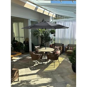 Possui excelente acabamento com pintura eletrostática, haste articulável (para ajustar a posição em relação ao sol) e abertura com sistema de manivela, que proporciona segurança, praticidade e durabilidade.
