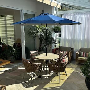 Possui excelente acabamento com pintura eletrostática, haste articulável (para ajustar a posição em relação ao sol) e abertura com sistema de manivela, que proporciona segurança, praticidade e durabilidade.