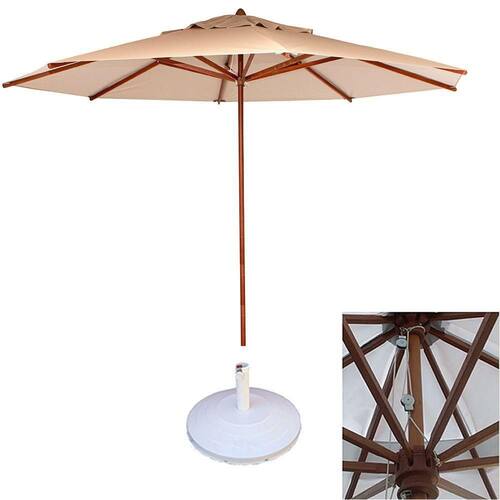 Ombrelone Guarda Sol 3,00 Metros De Madeira Com Base Bege