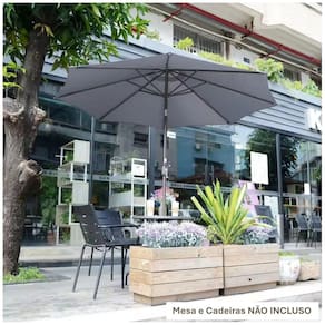 ( Atenção e Cuidado ) Recomendamos a utilização encaixado em uma mesa (em sua furação própria para isso ou com uma Base própria também para Ombrelones de no mínimo 20kg (disponível separadamente – não acompanha o ombrelone). Cubra com uma capa ou guarde-o quando não estiver em uso, isso irá prolongar a vida útil do seu ombrelone. Em condições climáticas extremas, chuvas ou ventos fortes, recomenda-se fechá-lo sempre para evitar quedas e acidentes.
