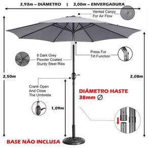 - Medida aberto: Altura 2,50 metros x Diâmetro 2,92 metros