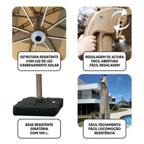 Ombrelone Guarda Sol Gold Led Alumínio 2,5 x 2,5 C/ Base em 100 L