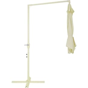 100% Poliéster Haste e varetas em aço Haste 48 mm; varetas de 12mm x 18 mm, comprimento: 52 cm Altura (até o topo): 2,45 m; altura (até o tecido): 1,95 m FPS: 35 Base em X para fixação de: haste da base 5,4 cm x 75 cm; comprimento: 1,00 m Base recomendado: 60 kg (15 x 4)