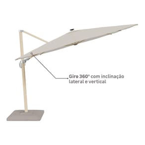 Ombrelone lateral articulavel, com inclinacao lateral e giro de 360o, oferece flexibilidade maxima para ajustar a sombra conforme a posicao do sol, garantindo conforto em qualquer hora do dia. Equipado com uma pratica manivela, facilita a abertura e fechamento, enquanto o pedal permite um ajuste preciso da posicao. Alem disso, o LED integrado oferece uma iluminacao suave e acolhedora para prolongar o uso do espaco ao ar livre durante a noite, criando uma atmosfera convidativa e relaxante.
