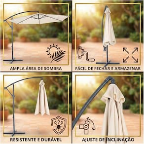 Os nosso Ombrelones suspensos são projetados pensando nos clientes. Desenvolvemos um sistema fácil de usar que abre e fecha o com facilidade. Todas as atividades podem ser realizadas de forma simples e descomplicada por uma só pessoa.