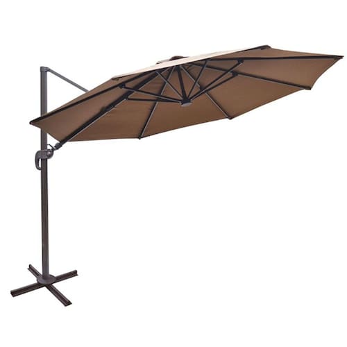 Especificações: Altura: 266cm Largura: 350cm Comprimento: 410cm Estrutura: compatível com base cruz, alumínio com pintura a pó e base cruz em aço. Capa: cobertura de 3,5 metros em de diâmetro, em tecido poliéster 260G//M², impermeável, revestido com poliamida e proteção UV. Funções: rotação 360° acionada por pedal, manivela para abertura e inclinação para 6 posições. Necessita de montagem: Sim