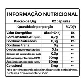 Ingredientes: Óleo de peixe, óleo de coco, maltitol, óleo de soja, glaceante cera de abelha, emulsificante lecitina de soja, edulcorantes sucralose e xilitol, óleo essencial de laranja e aroma natural de cereja. Composição da cápsula: gelatina, água purificada, umectante glicerina, edulcorante sucralose, corantes carmim e vermelho 40 e aroma natural de cereja. Não contém glúten