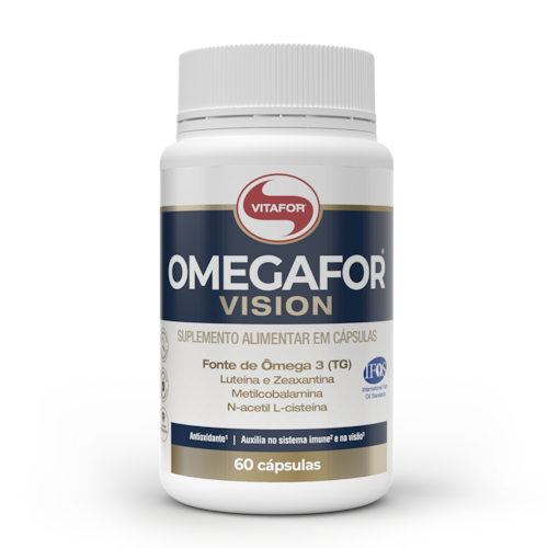 Cada cápsula de Omegafor Vision apresenta uma poderosa mistura de ômega-3 (EPA e DHA), luteína, zeaxantina, vitaminas A, C, D e E, além de minerais como zinco e selênio. Esses elementos atuam de maneira sinérgica para salvaguardar a saúde ocular, fortalecer a retina, evitar a degeneração macular e mitigar os impactos causados pelos radicais livres. Sugestão de uso do Omegafor Vision Vitafor: A recomendação seria de 1 capsula ao dia junto a uma refeição, pode ser consumido direto ou com água. Sempre com a orientação de um profissional da saúde.