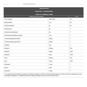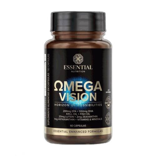 Omega vision 60 caps - padrão: único Omega vision 60 caps - essential nutritona exposição constante à poluição, raios solares, bactérias e ao excesso de luz azul artificial, emitida por aparelhos eletrônicos, pode prejudicar a visão ao longo dos anos. Com omega vision você tem um horizonte de possibilidades no cuidado da sua visão. Omega vision 60 caps essential nutrition é um suplemento de ômega-3 formulado com óleo de peixe tg e óleo de krill, com alta concentração de dha, enriquecido com luteína, zeaxantina e astaxantina, somado aos minerais zinco e cobre e às vitaminas a, c e e. As vitaminas c e e e o cobre são antioxidantes que auxiliam na proteção dos danos causados pelos radicais livres. O zinco e a vitamina a auxiliam na visão.- entenda um pouco mais sobre os selos existentes no ômega vision: selo superba boost: a matéria-prima da superba boost foi desenvolvida usando uma nova tecnologia exclusiva da aker biomarine chamada flexitech, tecnologia patenteada que utiliza exclusivamente métodos de fracionamento eficientes a baixas temperaturas, remove sais indesejados e outros constituintes polares, concentrando apenas os componentes benéficos. Selo pronova pure: um dos diferenciais que faz do ômega joint o melhor ômega 3 do mercado são os seus selos de certificações internacionais de qualidade. A exemplo o selo pronova pure: confirmando a utilização do óleo de peixe a partir de peixes gordurosos de águas geladas, profundas e não contaminadas da noruega. Benefícios: antioxidantes que auxiliam na proteção dos danos causados pelos radicais livres; auxilia na visão; ajuda a construir e estruturar as bainhas de mielina; evitar a formação de trombos coágulos no sangue; potencial antioxidante.