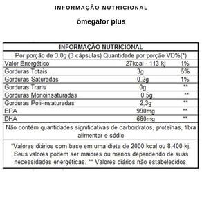 O Ômegafor Plus é um suplemento alimentar à base de óleo de peixe rico em ômega-3. Possui alta concentração de seus derivados, ácido eicosapentaenoico (EPA) 990mg e ácido docosahexaeoico (DHA) 660mg.