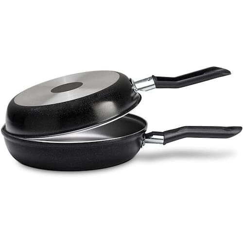 Descrição Para preparar omeletes rápidas e perfeitas, a omeleteira de 14 cm de diâmetro, com antiaderente pro-flon, da linha Ebony tem estrutura de alumínio que dissipa melhor o calor cozinhando a omelete por igual. O revestimento interno impede as omeletes de grudarem mesmo com uso reduzido de óleo. O material também facilita a limpeza. Sua segurança está garantida com os cabos de baquelite que não aquecem. A omeleteira da linha Ebony está disponível na cor preto brilho trazendo maior versatilidade e sobriedade para a sua cozinha.
