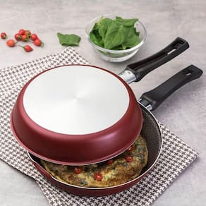 Omeleteira Alumínio Antiaderente Starflon Frigideira Dupla 20cm Loreto Vermelha Tramontina #Fácil de limpar #Linha Loreto #Não gruda Garantia: 90 dias / Peso: 396g / Cor: vermelho / Ref: 20123820 Dimensões totais: 36cm (C) x 20,5cm (L) x 7cm (A) Dimensões do lado de cima: 36cm (C) x 20,5cm (L) x 4cm (A) Dimensões do lado de baixo: 36cm (C) x 20,5cm (L) x 3,5cm (A) Diâmetro do fundo: 16cm (D) Espessura: 2mm Capacidade: 0,7L e 0,8L. Compatível com fogão: vitro cerâmico (resistência elétrica), a gás e elétrico. OBS: Não utilizar em fogões de indução. Limpeza e Cuidados: - Para remover alimentos queimados, deixe o produto imerso em água por alguns minutos. Se necessário, usar materiais não abrasivos; - Nunca utilize utensílios metálicos, objetos afiados ou produtos abrasivos, como esponja de aço para a limpeza; - A capacidade volumétrica máxima para cozimento é de 3/4 da capacidade total. - Utilize sempre em fogo baixo ou médio (nunca superior a 350ºC); - Nunca utilize produtos abrasivos na lavagem; - Este produto não pode sofrer modificações; - Pode ir à máquina de lavar louças. Material: - Alumínio: estrutura com material de alta qualidade; - Baquelite antitérmico: Cabos com alta durabilidade e baixa condução de calor. Preparar aquele omelete delicioso e cremoso para seu café da manhã ficou muito mais prático com a omeleteira Tramontina Loreto Desenvolvida para uso diário, ela é produzida em alumínio com revestimento interno e externo em Starflon Max, antiaderente que não deixa os alimentos grudarem, mais durável e não prejudicial à saúde. Seus cabos são em baquelite antitérmico, material que não aquece e garante um manuseio muito mais seguro e confortável. Um item fácil de limpar e que pode ir à máquina de lavar louças, facilitando o seu dia.