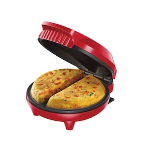 Omeleteira elétrica Mondial Pratic Omelet II, prepara dois omeletes simultaneamente, revestimento antiaderente, 800W de potência, controle automático de temperatura, alça fria, acabamento em aço inox.Base antiderrapante