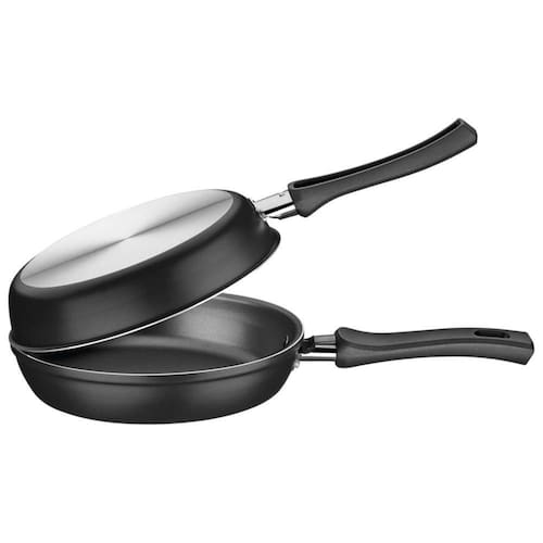Omeleteira em alumínio com revestimento interno antiaderente Starflon Max. Cabos em baquelite antitérmico. Diâmetro de 20cm. Cor grafite. Pode ir à máquina de lavar louças.Base antiderrapante
