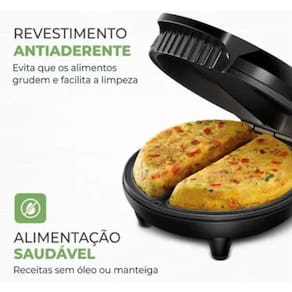 Omeleteira Mondial Luxx Black, 750W, prepara 2 omeletes simultaneamente, antiaderente, controle de temperatura automático, alça fria.Base antiderrapante