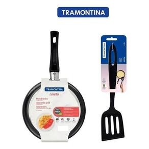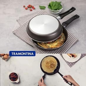 Omeleteira Tramontina Antiaderente 20cm Starflont1 E Espatula As panelas da Linha Loreto fazem sucesso na sua cozinha. Além da praticidade do cozimento uniforme, proporcionado pelo revestimento Starflon T1, elas permanecem bonitas por muito mais tempo. São fáceis de limpar, pois, devido ao antiaderente, os alimentos não grudam. Os cabos e alças de baquelite antitérmico e pegadores de nylon dão segurança durante o manuseio. Podem ser utilizadas em fogão a gás, elétrico e vitrocerâmico resistência elétrica e levadas à máquina de lavar louças.