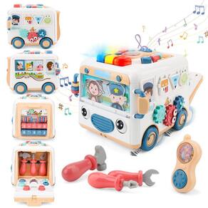 Baby Activity Cube Bus Cubo de atividade musical multifuncional Kids Bus Kids Bus Learning Toy Meninos Divertidos Bebês de 18 meses+ 2 3 4 5