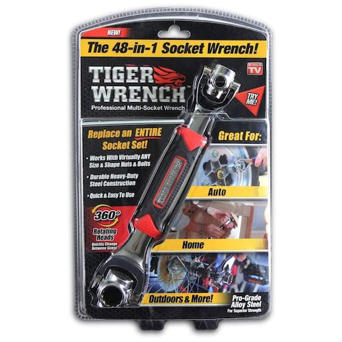 Tiger Wrench ferramenta com design exclusivo que combina 48 ferramentas em uma e torna qualquer reparo rápido e fácil! Simplesmente clicando entre os diferentes tamanhos, você tem instantaneamente a ferramenta de que precisa para o trabalho! RÁPIDO, E VOCÊ PRECISA DE RÁPIDO! Com a Tiger Wrench, você sempre terá a ferramenta certa para o trabalho. Pode clicar em um ângulo de 45 graus para obter aquelas porcas e parafusos difíceis de alcançar. Ferramenta profissional GROSSA, PESADA, projetada para realizar todos os seus projetos em casa, na loja ou no trabalho! Marca: Não Informado