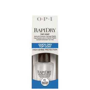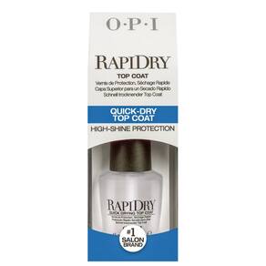 Finalizador de secagem rápida. OPI RapiDry Top Coat permite com que o esmalte seque mais rápido, além de proteger a cor de lascas e descamação.