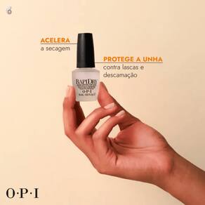 O Top Coat OPI RapiDry forma uma camada que deixa as unhas prontas para o dia a dia com mais rapidez, além de prolongar a duração do esmalte. É perfeito para quem não tem muito tempo ocioso.