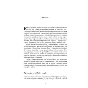Na vida de oração, a personalidade e o temperamento individuais também têm de ser levados em conta. Sem consciência clara da natureza individual, o esforço de relacionar-se com Deus por meio da prece costuma resultar em angústia, frustração e até em esgotamento mental. Tudo se torna mecânico e o indivíduo tenderá a distrair-se e a sentir-se mais e mais culpado de seus defeitos, em vez de seguir em frente e perceber o caráter inato e até mesmo saudável de muitas de suas tendências. Só assim a oração pode vir a ser "uma conversa familiar de união do homem com Deus" nas palavras de São João Clímaco. Estudiosos do Indicador de Tipo Myers-Briggs (mbti), os autores deste livro decidiram experimentar o célebre sistema de classificação de personalidade em retiros e direções espirituais, em vista de um melhor guiamento das almas individuais. Do sucesso das experiências veio a motivação para escrever Oração e temperamento. O volume oferece uma visão geral da história do temperamento e de sua relação com a vida espiritual desde a medicina hipocrática à psicologia moderna, passando por Cristo e os apóstolos , a que se seguem variadas sugestões práticas, baseadas, por sua vez, num esquema de correspondências entre os quatro tipos fundamentais de temperamento e quatro formas tradicionais de oração: inaciana, agostiniana, franciscana e tomista.