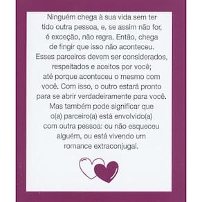 Oráculo do Amor Sistêmico O Oráculo do amor sistêmico foi feito para você, que deseja entender um pouco mais sobre a sua vida amorosa e os seus relacionamentos, de forma sistêmica. Todos nós estamos conectados aos nossos pais e antepassados, e em determinados momentos repetimos padrões, sem ter consciência disso. Este livro-caixinha® lhe trará clareza sobre a sua dinâmica familiar e a reverberação dela em sua vida amorosa e nos tipos de parceiros(as) que você atrai. Se deseja entender suas relações, use e abuse desta obra para buscar suas respostas. Ela pode ser utilizada para consultas pessoais, dinâmicas de grupo, em atendimento por terapeutas, consteladores, psicólogos e todas as pessoas que queiram usá-la no dia a dia.