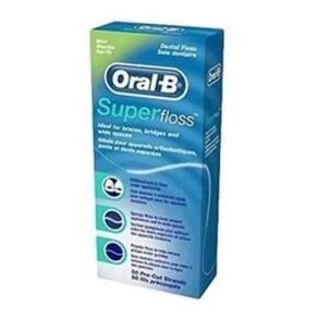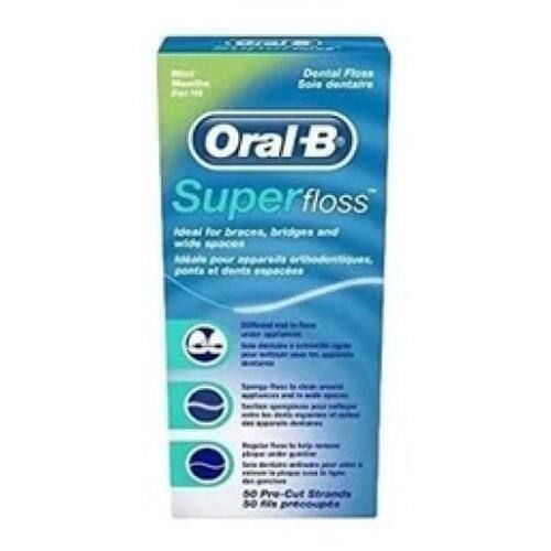 Característicasoral-b Superfloss Mint tem as seguintes características: Ideal para cintas, pontes e também vãos largos; Três fios diferentes em apenas um fio; Permite o uso do fio dental sob aparelhos dentários; Limpa entre espaços amplos e também em torno de aparelhos; Remove a placa sob a gengiva.