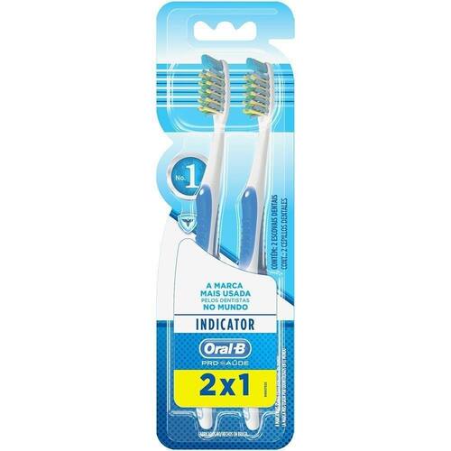 Oral B Indicator Plus 40 Escova Dental C/2 DESCRIÇÃO: A Escova Oral-B Indicator possuí o sistema de cerdas Indicator - cerdas azuis que se descolorem até a metade, mostrando o momento certo de substituir a escova.AÇÃO/ATIVOS: As cerdas de pontas cuidadosamente arredondadas limpam gentilmente seus dentes e gengiva e o cabo emborrachado Comfort Grip proporciona um maior conforto e controle durante a escovação. MODO DE USAR: 1- Escove as superfícies voltadas para a bochecha dos dentes superiores e, depois, dos inferiores. 2- Escove as superfícies internas dos dentes superiores e, depois, dos inferiores. 3- Em seguida, escove as superfícies de mastigação. 4- Para ter hálito puro, escove também a língua, local onde muitas bactérias ficam alojadas.ESTE ANÚNCIO CONTÉM: 01 Oral B Indicator Plus 40 Escova Dental C/2Oral B Indicator Plus 40 Escova Dental C/2