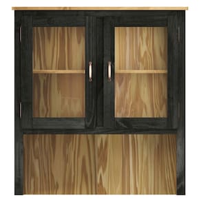 - Acabamento: Cera na cor preto oliva com veios e nós aparentes.