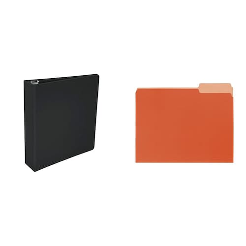 - O kit inclui: fichário em D preto de 2 polegadas e pacote com 100 pastas de arquivos reversíveis laranja