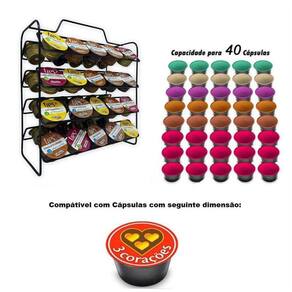 -capacidade: 40 Capsulas -fácil de limpar e usar. -cápsulas compatíveis com café Três Corações . -tratamento antiferrugem. Com esse suporte, seu espaço além de organizado, também ganhará um toque a mais de beleza, sofisticação e praticidade.