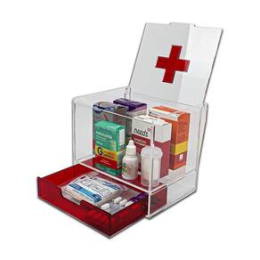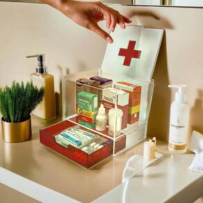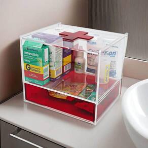 Com um design compacto e versátil, este organizador é perfeito para otimizar o espaço em sua casa ou consultório médico. Sua estrutura em acrílico transparente cristal e vermelho transparente oferece uma visualização clara do conteúdo, tornando mais fácil identificar os medicamentos que você precisa. Além disso, a tampa articulada permite um acesso rápido e conveniente ao compartimento principal, enquanto a gaveta logo abaixo proporciona espaço adicional para armazenar itens menores ou medicamentos de uso frequente.