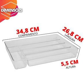 Organizador acrílico talheres gaveta 5 divisórias 27x35cm