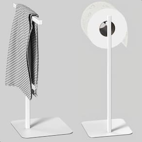 O Porta Papel Higiênico De Chão Branco E Toalha Lavabo Nice possui um design elegante e minimalista que complementa qualquer decoração de banheiro. Além disso, sua construção robusta em aço de alta qualidade garante durabilidade e resistência, suportando o uso diário por anos.