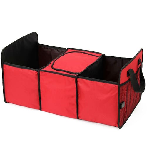 Com este Organizador Térmico dobrável e expansível você terá muito mais espaço em seu porta-malas. Feito em material resistente no tamanho 60x32x29cm, seu interior possui 3 compartimentos de armazenamento separados, sendo um próprio para conservação da temperatura de bebidas ou alimentos (quentes ou frios). Tem dois grandes bolsos em ambos os lados. Design moderno.