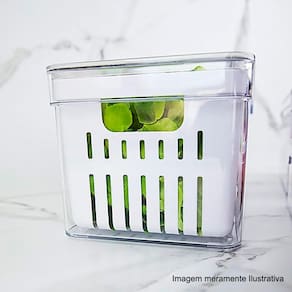 A Linha Clear Fresh traz praticidade na hora de organizar a geladeira. É uma linha completa que foi desenvolvida especialmente para armazenar folhas verdes, frutas, legumes, verduras, frios e outro alimentos na geladeira. A transparência permite fácil visualização dos alimentos e também possuem tampa para empilhar como quiser e controlar a ventilação. O escorredor interno evita o contato do alimento com a água, mantendo fresco por maior tempo.