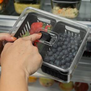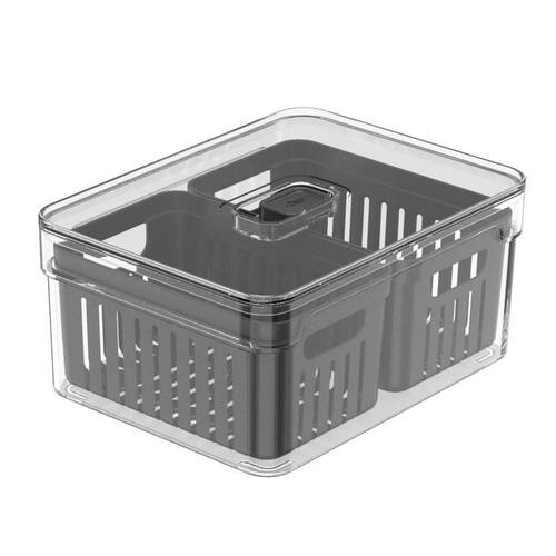 Cesto com 2 compartimentos. Organizador de geladeira acrílico com tampa cesto drenagem clear fresh 2,2l ou