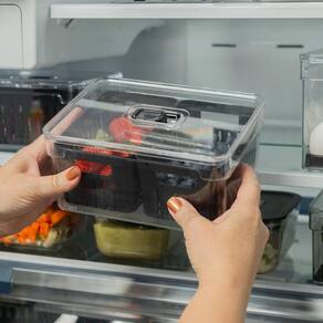 O organizador de geladeira 2,2 litros com cesto clear fresh é o novo padrão de transparência na organização da sua geladeira. Empilhe, encaixe e enxergue facilmente os alimentos armazenados na geladeira, mantendo tudo em ordem. Seu design foi pensado para promover frescor prolongado para alimentos como: fruta, saladas, verduras e legumes mantendo uma rotina sem desperdícios. Super transparência, beleza e cuidado com o alimento são características da linha clear fresh, perfeitas para auxiliar na organização da sua geladeira e facilitar o seu dia a dia.