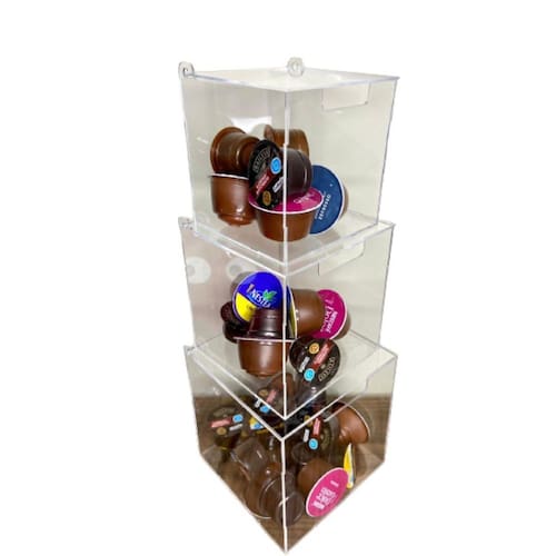 Além de serem práticas, as caixas são produzidas em acrílico transparente, o que permite uma visualização clara das cápsulas, facilitando na hora de escolher seu café preferido. O acrílico é um material resistente e durável, garantindo a segurança e a proteção das cápsulas.