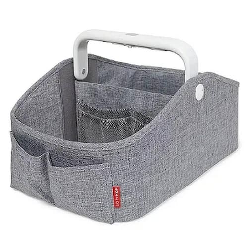 O Organizador de Acessórios com Led Cinza da Skip Hop é o parceiro perfeito para facilitar a troca de fraldas do seu bebê durante a noite. Com uma alça que emite uma luz suave sensível ao toque e um recurso inteligente de desligamento automático após 10 minutos, este organizador é prático e funcional.