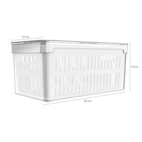 O Organizador de Geladeira Clear Fresh 5 Litros da Ou é projetado para prolongar o frescor de frutas, legumes e verduras através de um sistema de ventilação e drenagem. Composto por um corpo transparente, tampa com respiradouro e cesto interno removível, o item permite o empilhamento e otimização do espaço interno da geladeira.
